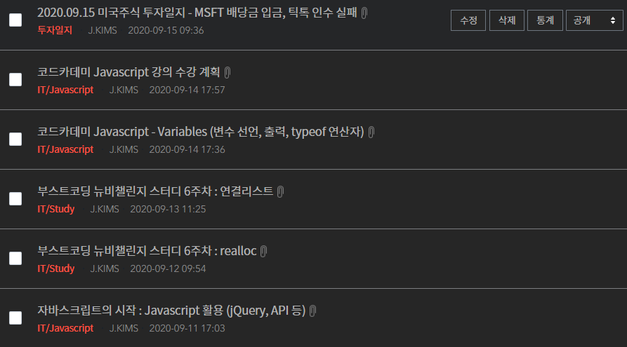 9월에는 거의 매일 포스팅을 했고 얼마전에 총 게시글 100개를 넘겼습니다