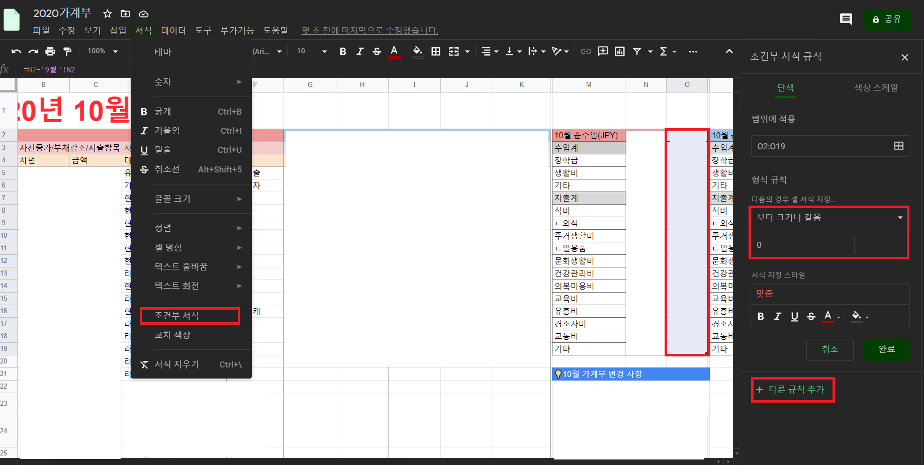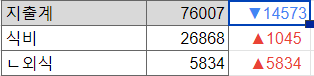 수식은 지난달 지출에서 이번 달 지출을 뺀 것을 입력해뒀습니다.
