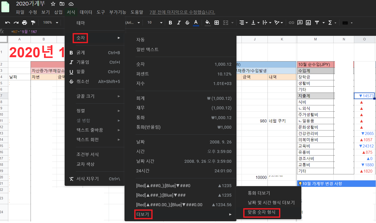서식 > 숫자 > 더보기 > 맞춤 숫자 형식