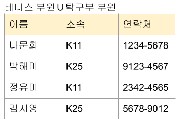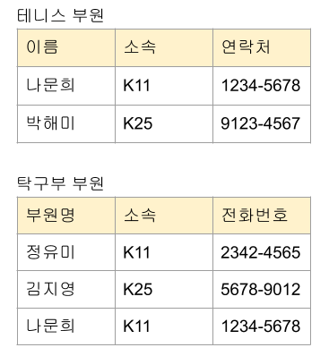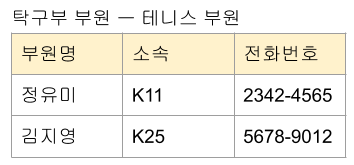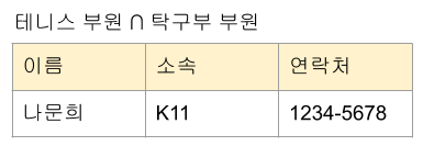 이때 속성명이 다른 것은 문제가 되지 않는다. '이름'이건 '부원명'이건 대응하는 도메인은 동일함. (도메인의 정의는 어떤 범위의 집합이므로)