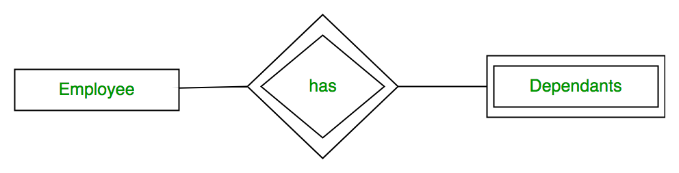 또, 약한 개체와의 관계 "Borrows"를 식별 관계성 타입(identifying realtionship type)라고 한다.