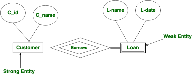 위 예시에서는, 고객 없이는 대출도 없으므로 Loan이 약한 개체가 된다.