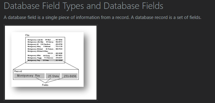 필드(field)는 레코드에 담긴 하나의 정보 조각. 즉, 필드가 모여서 레코드가된다.