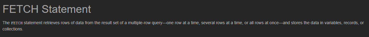 페치(fetch)는 데이터에서 행을 얻어오는 것.