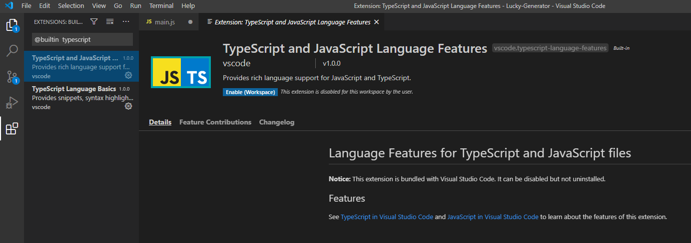 익스텐션 검색창에 들어가서 @builtin typescript라고 검색해서 위 익스텐션을 찾는다.