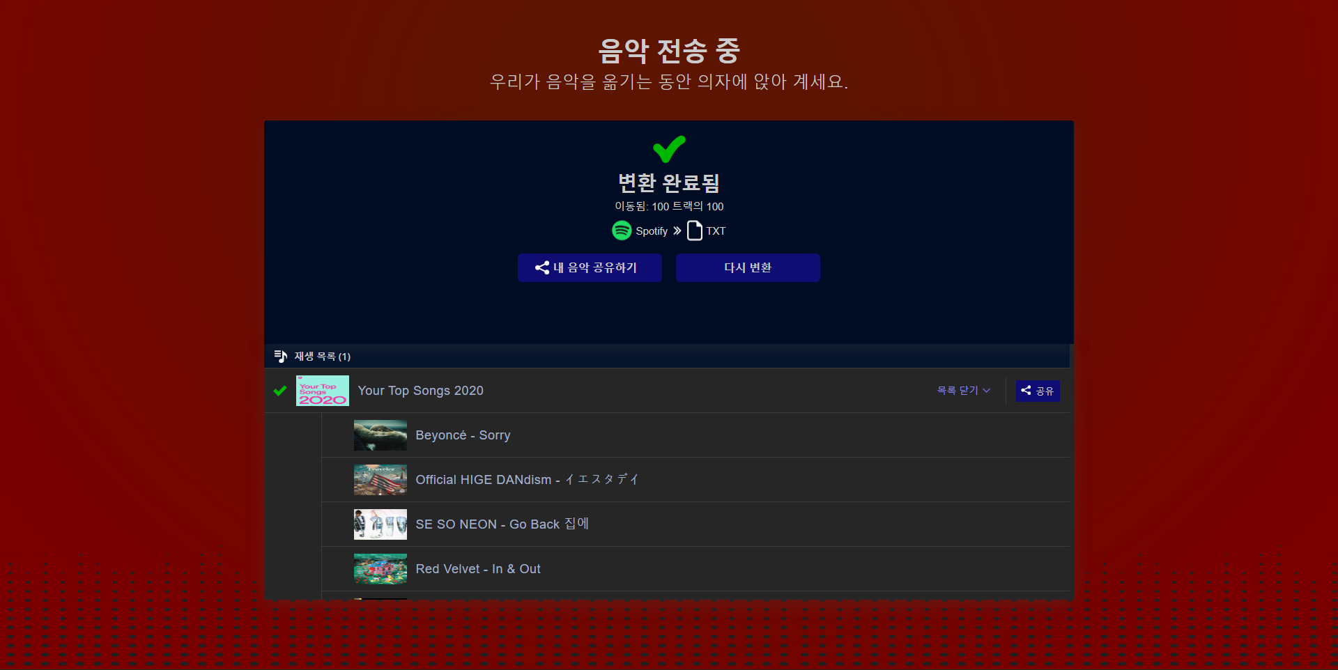 음악 서비스에서 플레이리스트를 텍스트나 csv 파일로 뽑아낼 수 있는 사이트