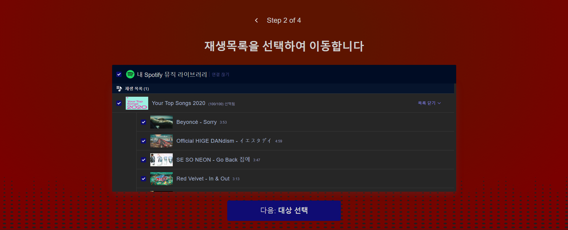 STEP3. 마지막입니다. 플레이리스트를 어디로 내보낼 지 선택합니다.