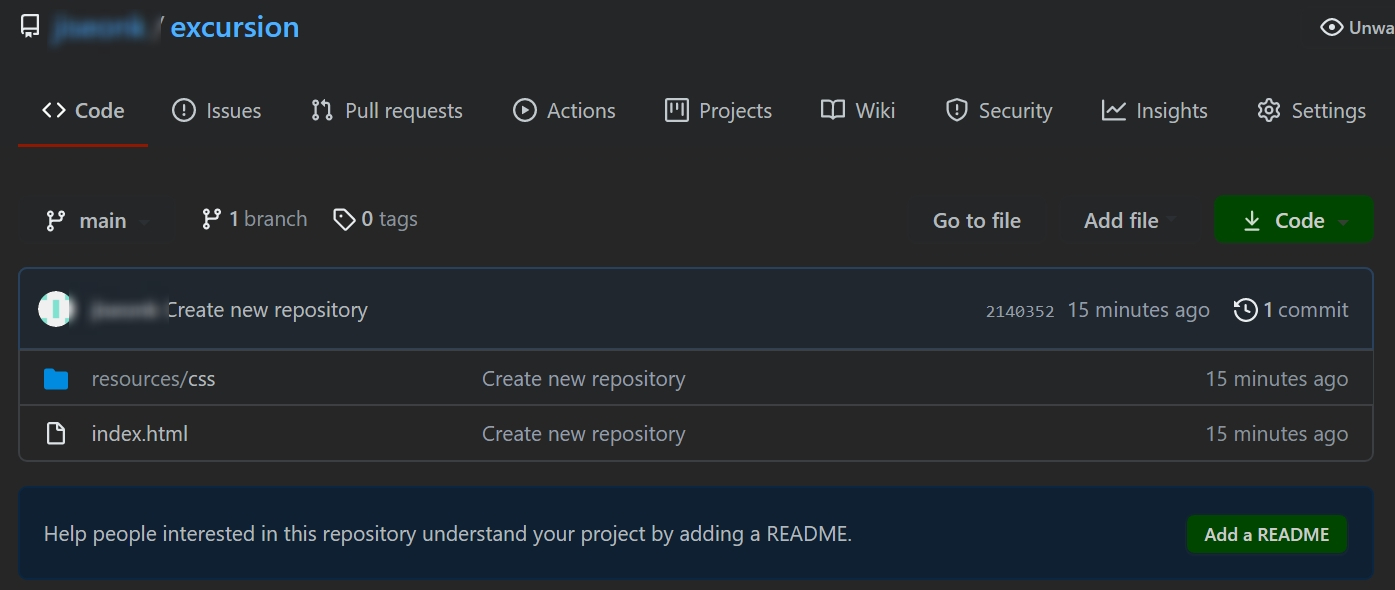 저장소를 새로고침 해보면 이렇게 커밋 메세지와 파일들이 나타난다.
