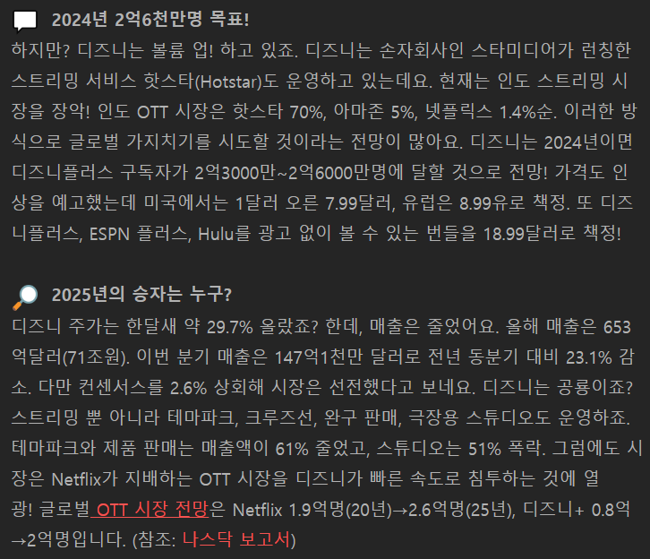 디즈니가 이렇게 매력적인 기업이란 걸 이제 알아서 기회가 오면 내 포폴로 들일라고 알짱거리는 중.