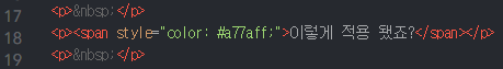 중요한 건 style="color: #a77aff;" 이 부분입니다.
