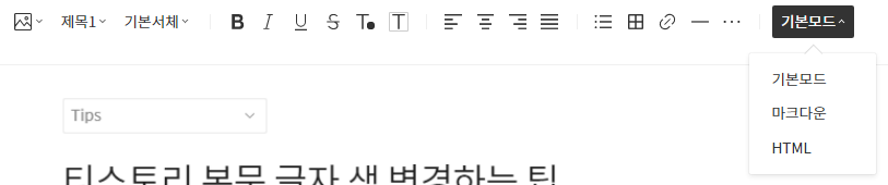 이제 티스토리 에디터로 돌아와서 글자색을 적용해줍니다.
