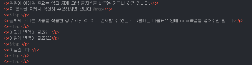 여러줄에 색을 적용할때는 저 style부분만 복사해서 붙여넣기 해주면 편집이 훨 수월해집니다.