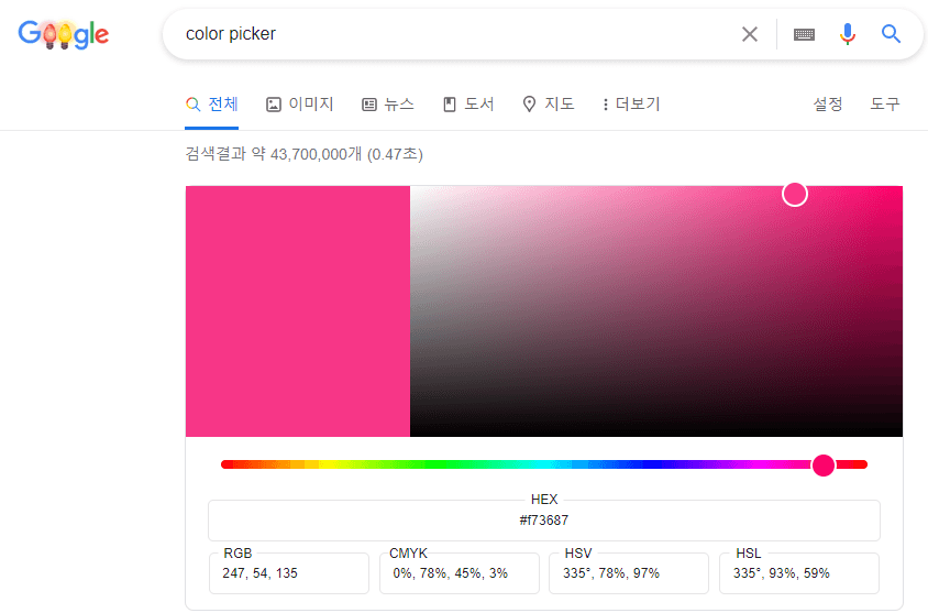 구글에 color picker라고 검색하면 위와 같은 화면이 나옵니다.