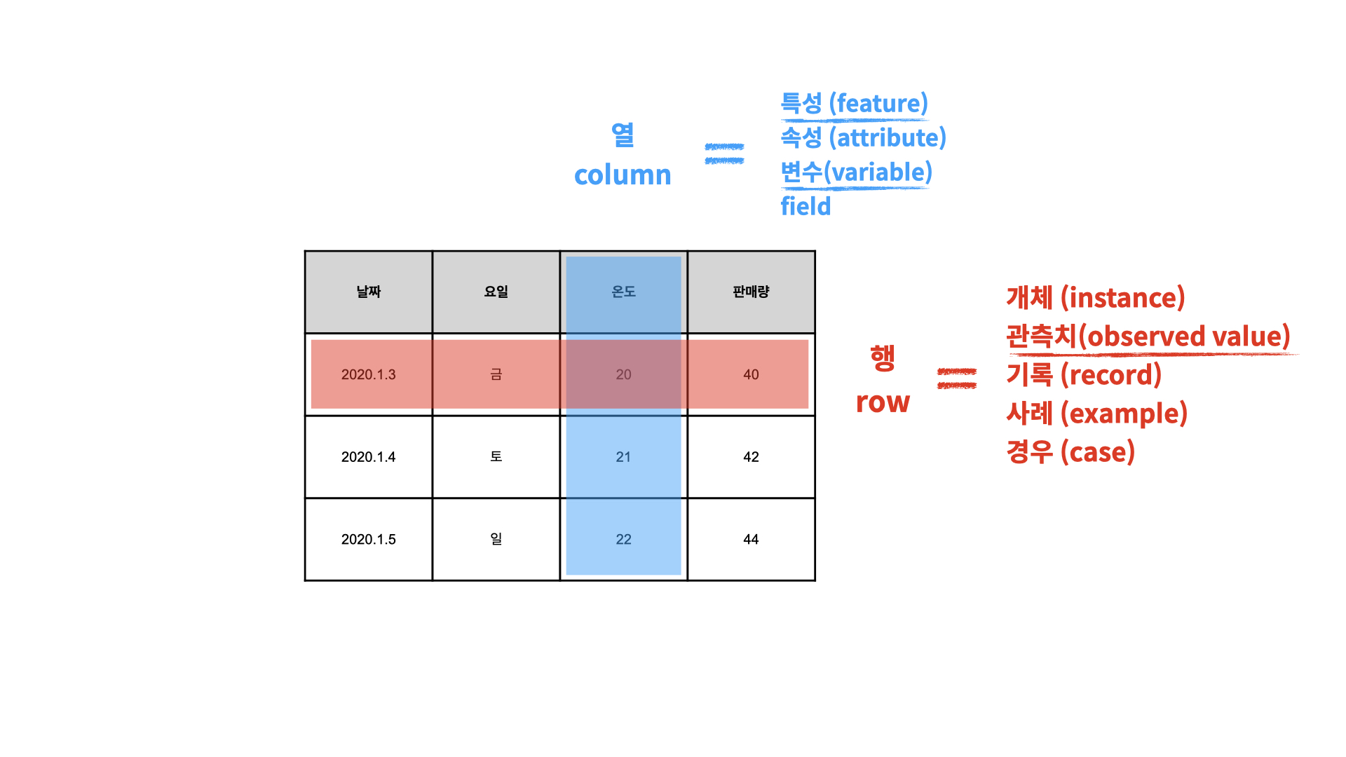 실험 데이터 분석할 때도 자주 들은 기억이 있는데 저렇게 한 행을 가리키는 용어인 줄은 몰랐다.