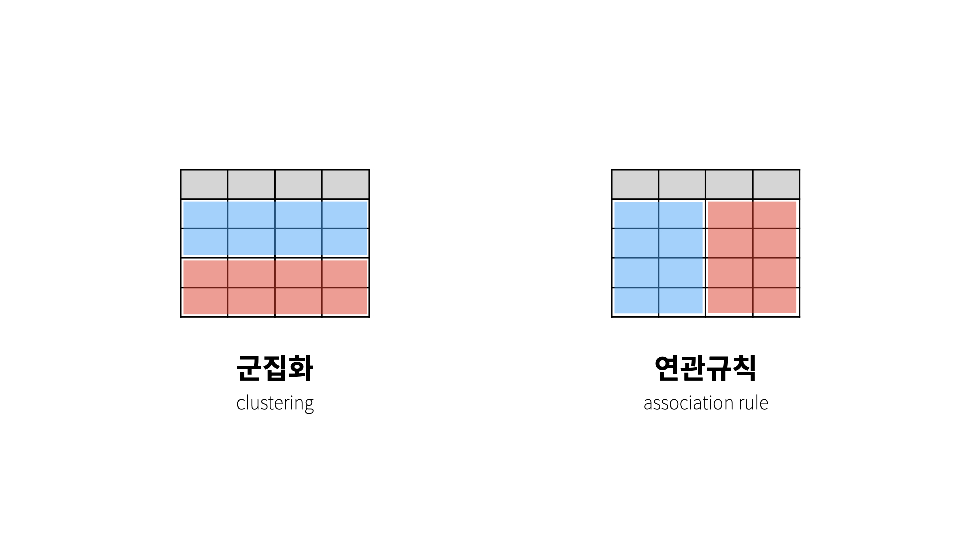 특성(열)을 그룹화 하는 것 = 연관 규칙