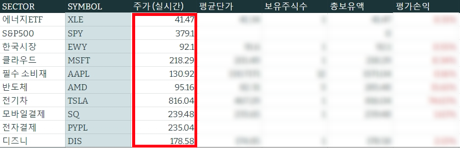구글 스프레드 시트에서는 구글 파이낸스 함수를 쓰면 손쉽게 실시간 주가를 불러오는 것이 가능합니다.