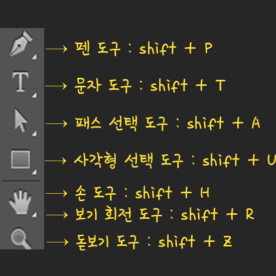 자주 쓰는 툴은 단축키를 외워두면 작업시간이 단축되겠죠?