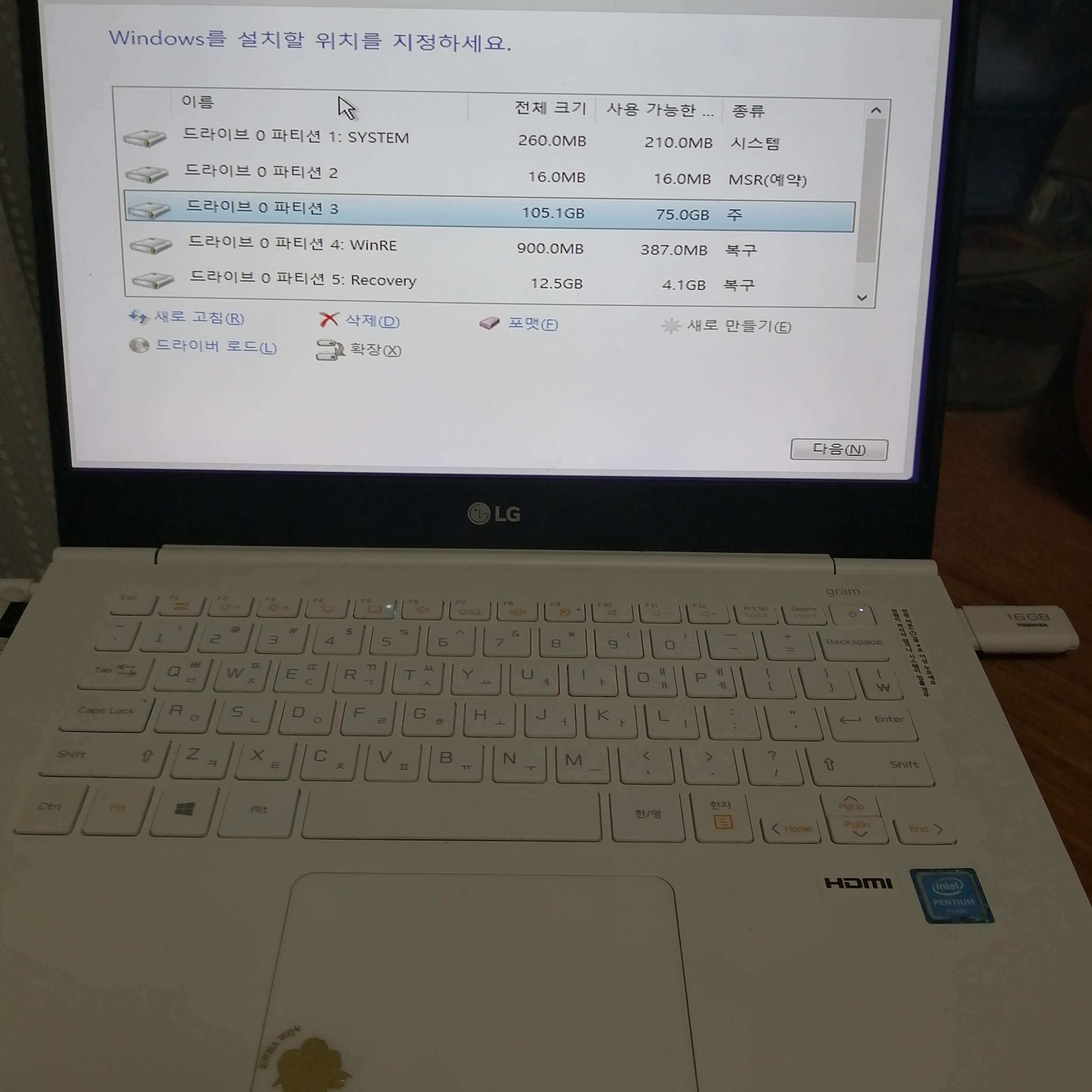 그래서 결국 usb로 윈도우를 재설치하기로 마음 먹었습니다.