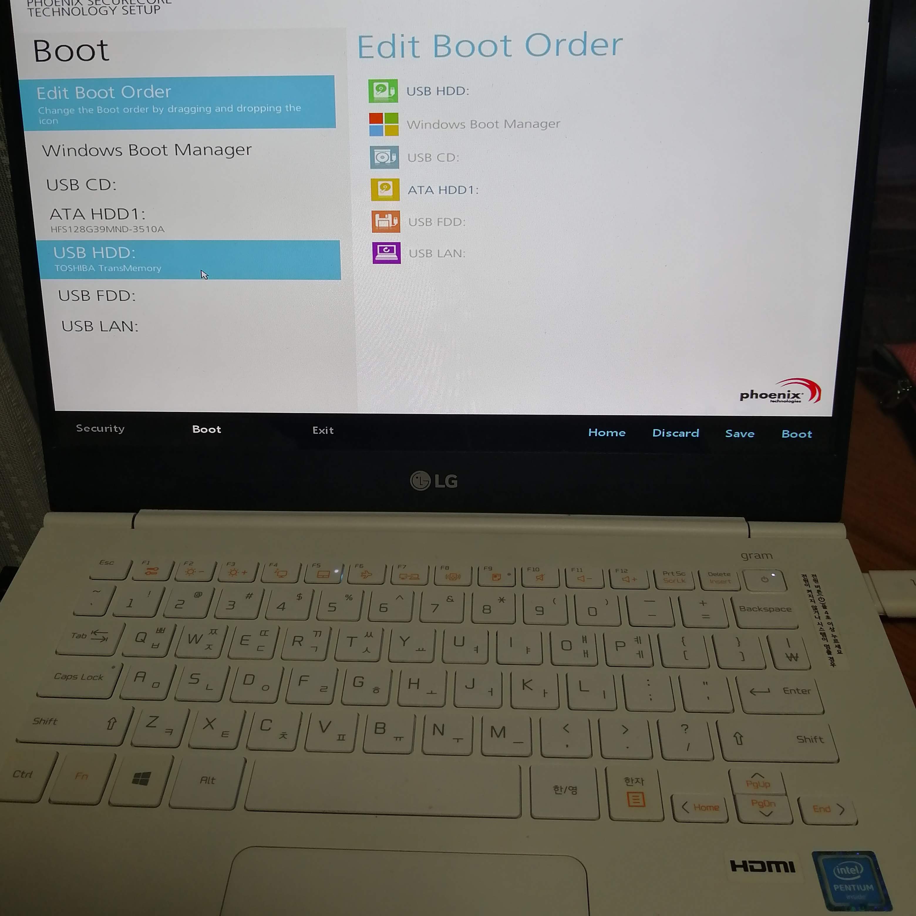 엘지그램에서 부트오더 편집화면은 이렇게 뜹니다.