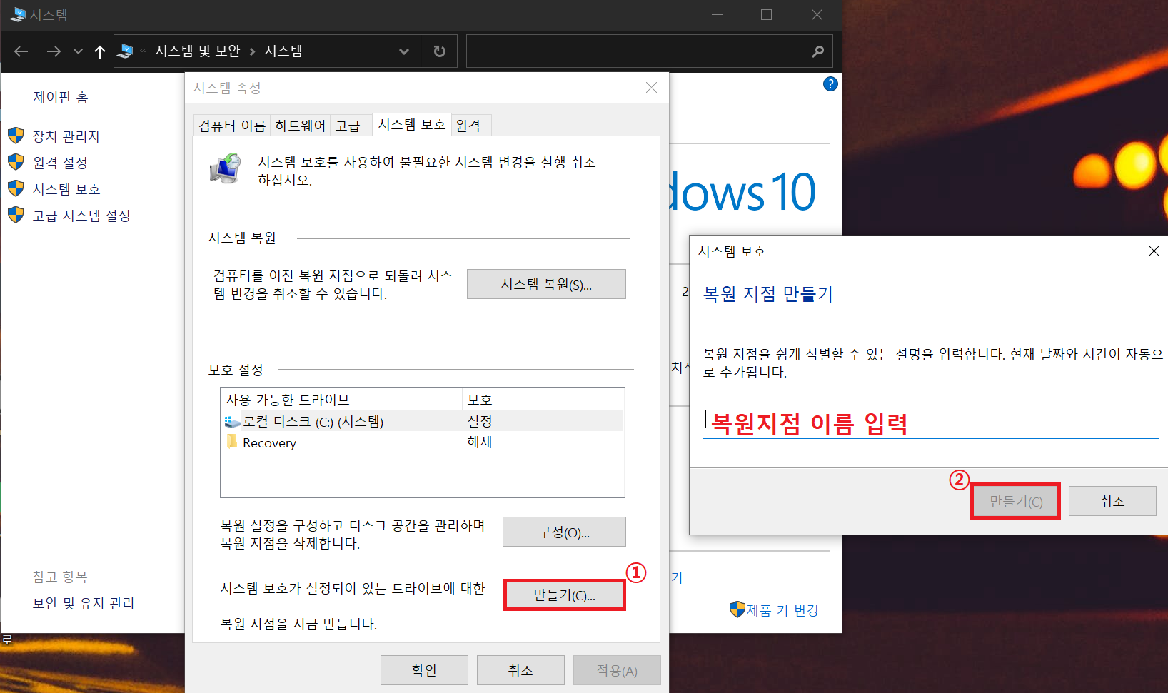 마지막으로 만들기를 누르고 복원지점을 생성해주면 끝입니다!