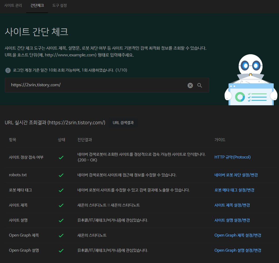 서치어드바이저에서 간단 체크라는 기능을 제공하길래 한 번 돌려봤습니다.