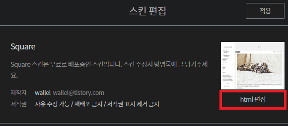 제가 쓰고 있는 스킨은 Square인데 어떤 스킨을 쓰는지는 중요하지 않습니다.