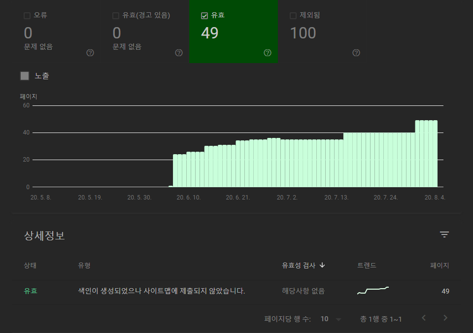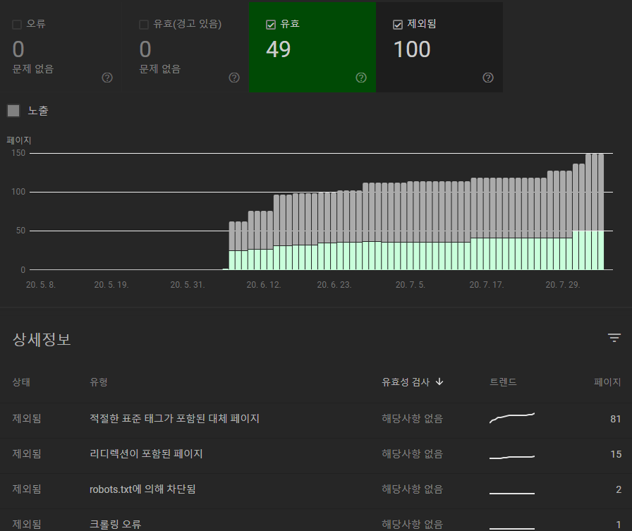 색인 생성 범위를 확인해보니 유효 49 제외됨 100 이렇게 뜨더라고요?🤔