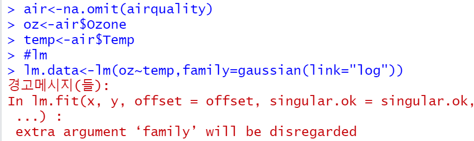 분명히 이전에 airquality 데이터들로 아무 문제없이 선형 회귀를 했던 기억이 있는데