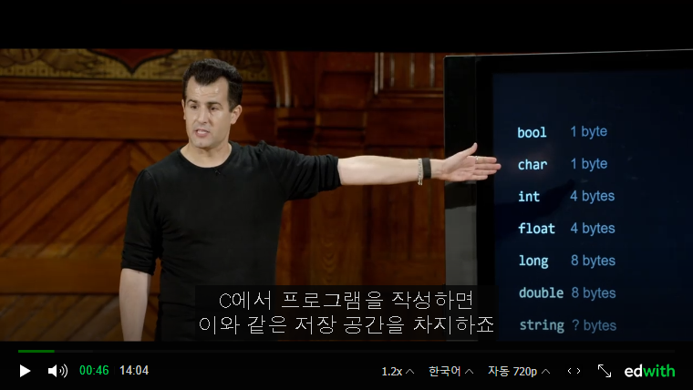 C언어에서 각 자료형이 차지하는 크기는 아래와 같다.