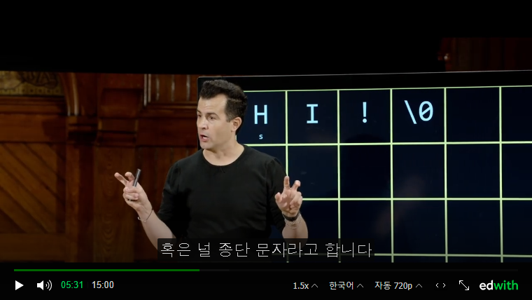 - 널 문자(\0) : 배열의 끝나는 위치를 알려줌. printf 함수는 널문자를 만나면 출력을 종료한다.