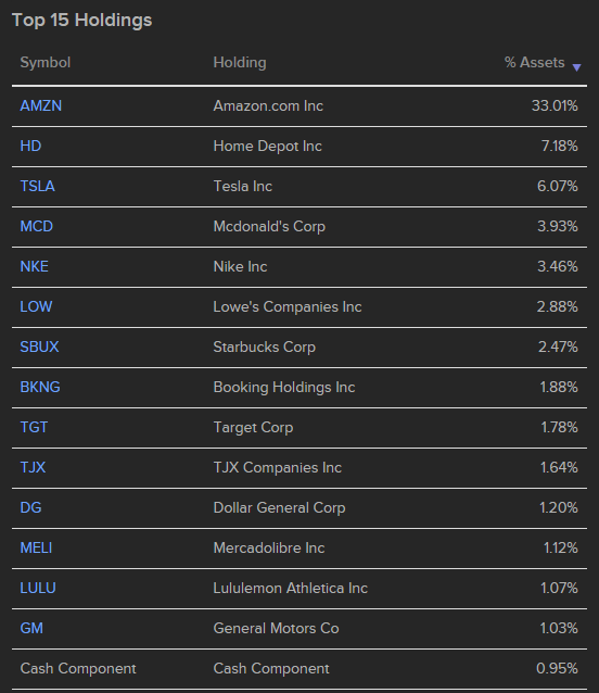 기술주 ETF에도 아마존이 포함된 상품은 많은데 저는 이미 개별종목으로 기술주들을 많이 가지고 있어서 다른 섹터로 눈을 돌리다가 이 ETF들을 찾게 되었습니다. 만약 아마존 포함 전반적인 기술주에 투자하길 원하시는 분은 꼭 다른 상품을 알아보시길 권합니다. 비중이 높기로는 소비재 섹터 ETF지만 10%정도만 투자하길 원한다면 다른 테크 ETF도 많습니다.
